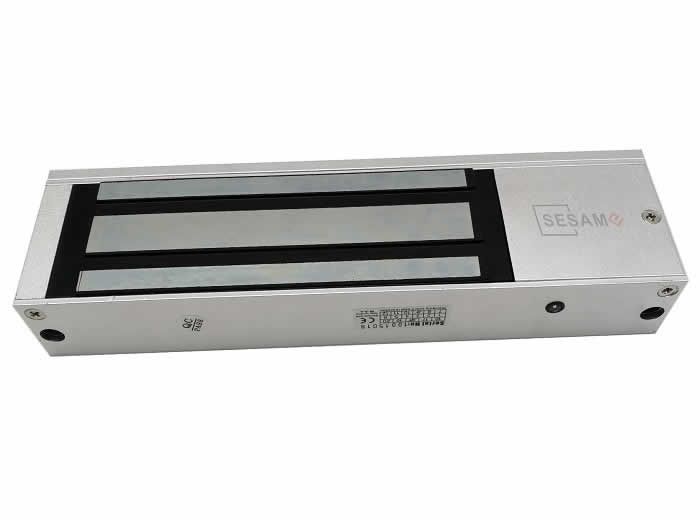 Electromagnet forta 500 kg, cu LED rosu/verde, fail-safe (power to lock), pentru o usa din lemn, sticla, metal etc., montaj aplicat, consum curent redus, operare durabila si silentioasa, alimentare 12 VDC, curent absorbit 12V/450mA, dimensiuni 265 x 40 x 73 mm, dimensiuni armatura 185 x 13 x 60 mm, greutate aprox. 4.4 kg